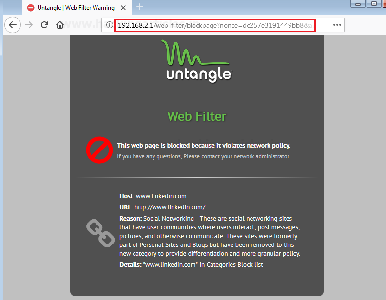 On this system, Let’s try to open www.linkedin.com site and see the result this site is under the web filter block category.