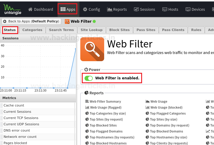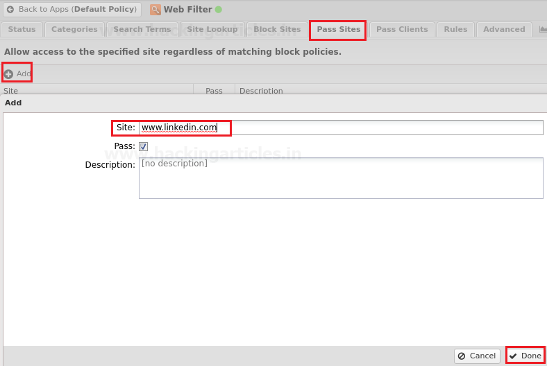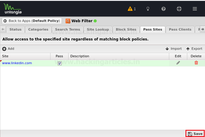 Now again come to the untangle Dashboard: app > web filter > Pass the Client