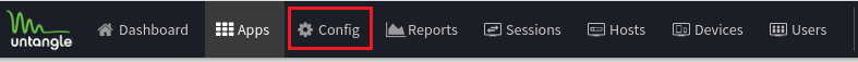 The config tab holds all the settings related to configuration of the Untangle server itself and settings for components of the platform that apps may interact with.