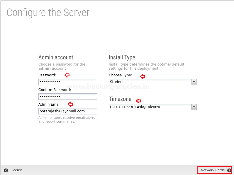 Configure the Server, In the first step, you have set a password and select a time zone for the administrator account. The admin e-mail can also be listed for warnings and reports. Optional method of installation.
