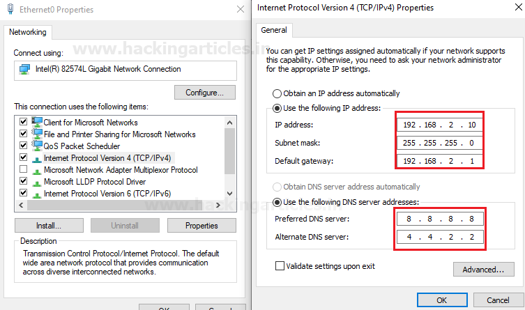 This client is an internal system and we will set default gateway 192.168.2.1 <IP of Untangle firewall>.