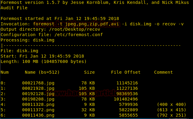 As you can see, Foremost was successfully able to carve files out of the disk image file and give us the results. Let’s put it to the test.