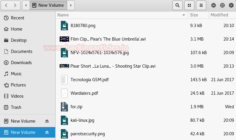 In the interest of thoroughness we have copied .docx, .jpeg, .png, .zip, .pdf and .avi files onto the partition from which we will be making our disk image.