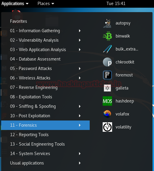Navigate to the Applications menu in Kali, Forensics is option 11. The fifth option from top in the Forensics menu is Foremost. Click on it and let’s get to carving some data!!