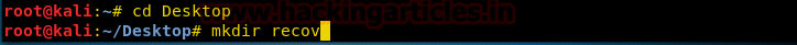 Next, make a folder on the desktop by the name of “recov”. This isn’t a mandatory step; it just makes things easier to access by creating a new folder to store the carved data.