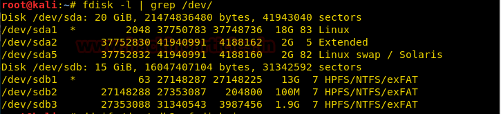In a new terminal window, type the following “fdisk –l | grep /dev/”. This command will show you the disk partitions available to you without any clutter.