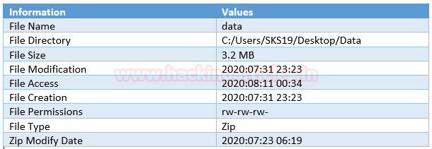 The Second file we got is data. Repeat the previous step, to get metadata of this file drag and drop this corrupt file on the [exiftool(-k).exe] in the archive file which we just unzipped.