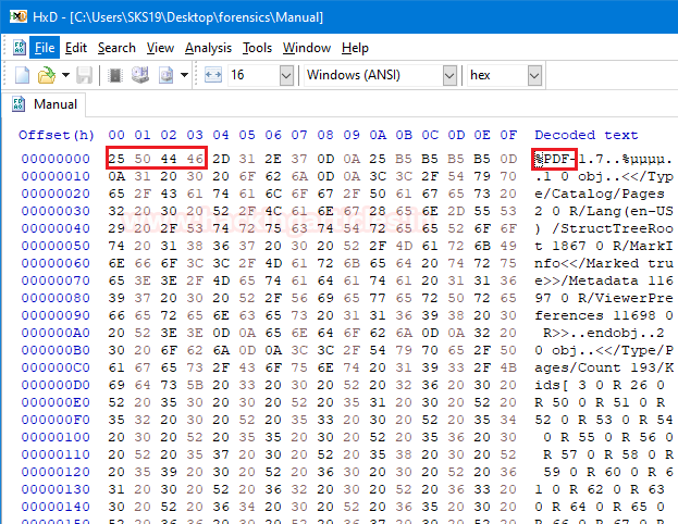Now, try to match its four bytes with our cheat sheet. Then we come to know that it is a .pdf file with ASCII translation %PDF. Change its name and provide .pdf extension to it, with the help of rename command.