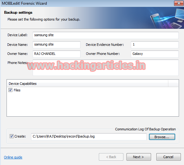 To take the Backup, first of all enter Owner Name, Device Evidence Number and Owner Phone Number.