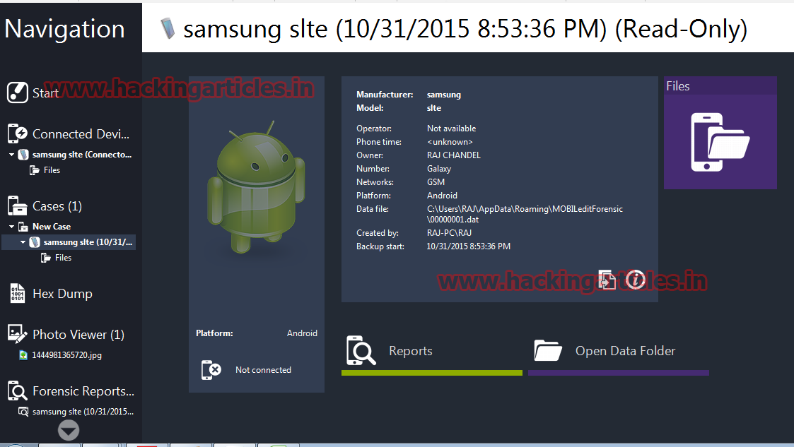 Now it will generate a report with all the details such as Phone book, Call logs, messages, Files etc.