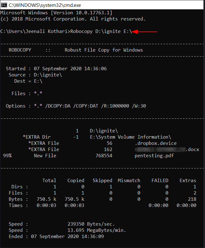 This is one of the manuals and simplest technique which does not require any fancy, expensive, or automated software to transfer files from one location to the other in a windows system with just using a command in the command prompt. The Robocopy command stands for ‘Robust File Copy’, which was introduced in Windows NT and has been popular ever since to copy files from one location to another robustly. You can type;