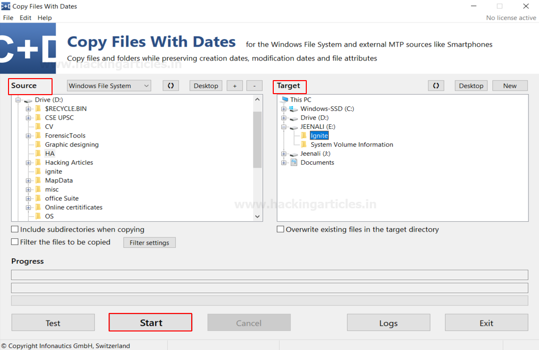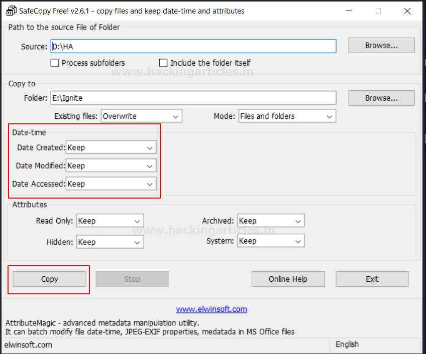 It is a software which can be used to perform forensics as well as anti-forensics. You can download it from here. Add the source and the destination path and keep the same date and time of the file to preserve it and then click on copy.