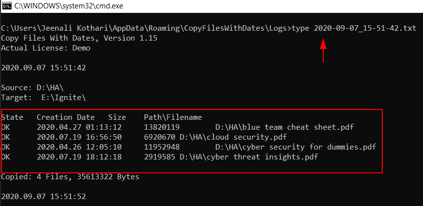 After you complete the copying, you can manually see that there is no difference in the date time stamp in the copy of the file.