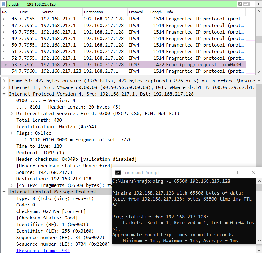 ping –l 200 192.168.217.128