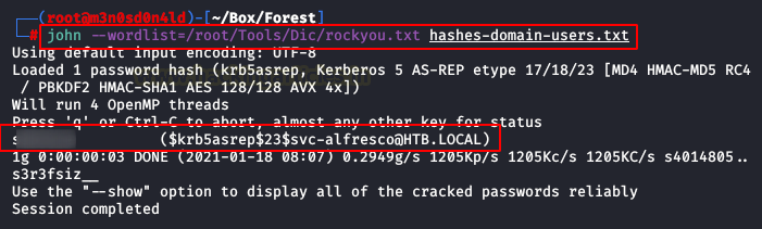 john --wordlist=/root/Tools/Dic/rockyou.txt hashes-domain-users.txt