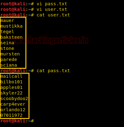 So we create two wordlists one for username and one for passwords, we will use this to brute force pop3 login.