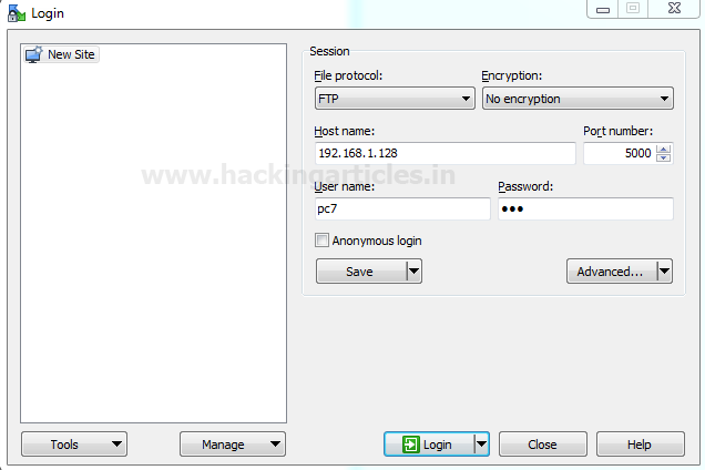 Now to verify if the service is actually running on port 5000 let’s login into FTP server using WinSCP and this time using port 5000 as shown below