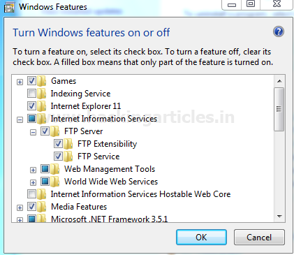 Also, ensure that FTP Extensibility and FTP Service are both checked as shown below and click OK to begin Installation.