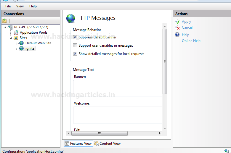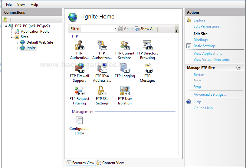 From the given image, you can see we had successfully configured an FTP server for Ignite. Now let’s try to connect with it for sharing files.