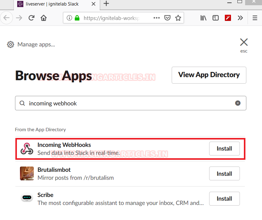 After adding the Webhooks, we will be asked to configure some settings for the app. This will include the configuring the channel on which the incoming notifications will be broadcasted. Here we select our channel and click on the Add Integration Button.