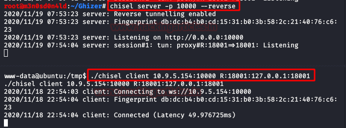 After that, we use “Chisel” for port forwarding on local port 18001.