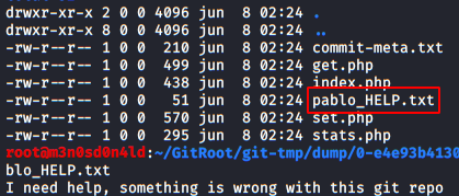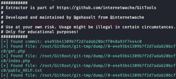 Now, we’ll recover all the files with the GitTools Kit Extractor tool (including “pablo_HELP“)