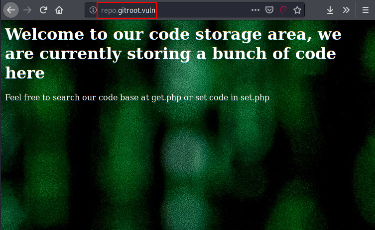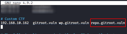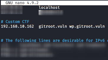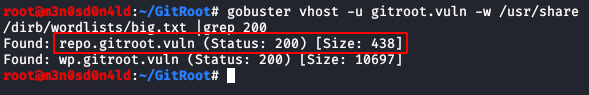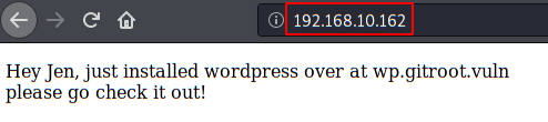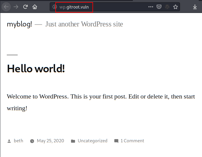 We access the website, it tells us that the site is hosted in the subdomain “wp.gitroot.vuln“.