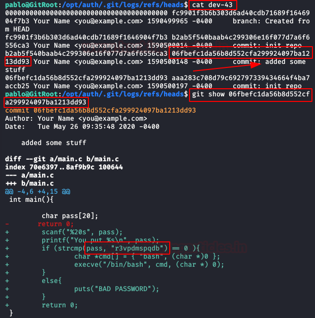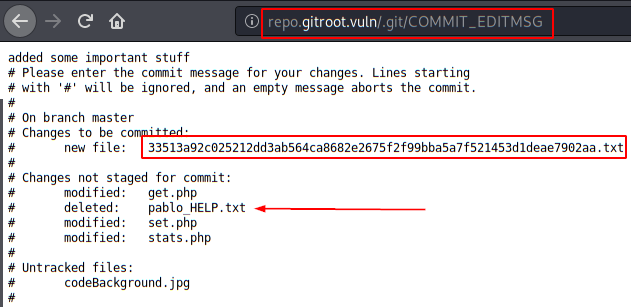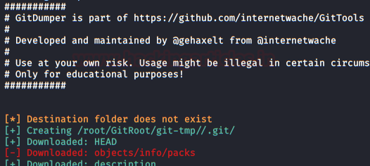 ./gitdumper.sh http://repo.gitroot.vuln/.git/ /root/GitRoot/git-tmp/