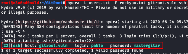 We used the credentials in both WordPress and SSH, but without success. Although we already know the names of the users, we carried out a brute force attack on the SSH service with the “rockyou” dictionary.