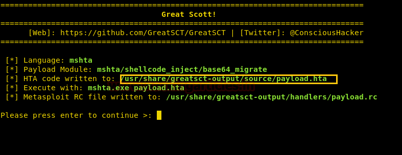 msfconsole -r /usr/share/greatsct-output/handlers/payload.rc