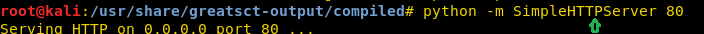 Now start the python’s server in /usr/share/greatsct-output/compiled by typing: