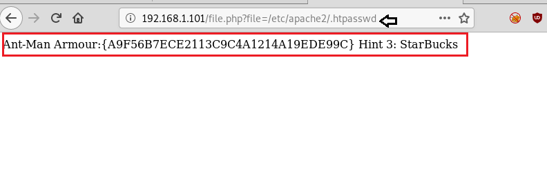 When you dig more and more than inside /etc/apache2/.htpasswd file you will find the third amour which for “Ant-Man” and along with this 3rd hint: StarBucks.