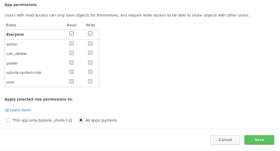 Configuration files need to be added in order to run the shell successfully, here we set permission to everyone and at the bottom, we click on the “All apps” radio button and save this change.