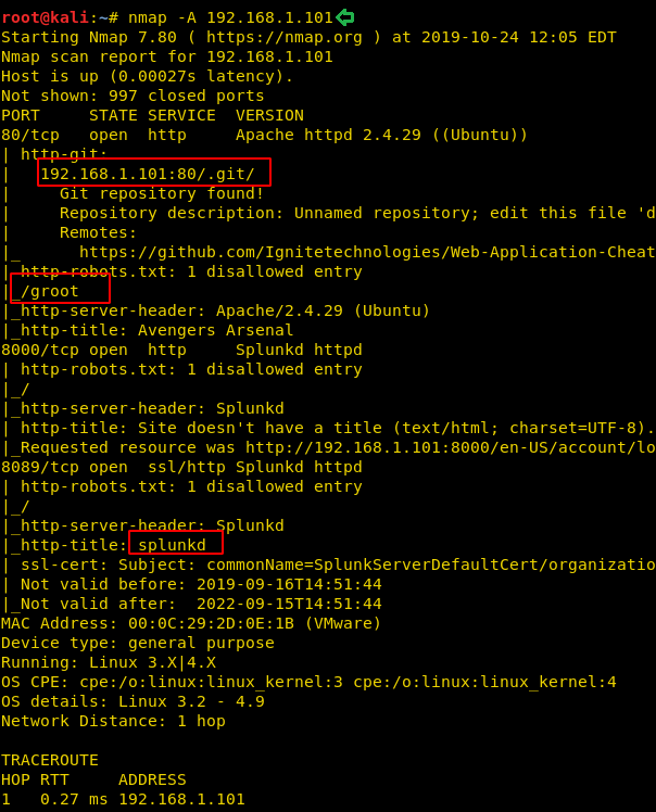 nmap -A 192.168.1.101