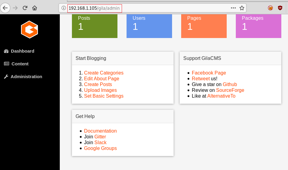 They worked like charm. We got inside the Gila CMS admin panel. We took a look around to see if we have any hints or any way to exploit it.