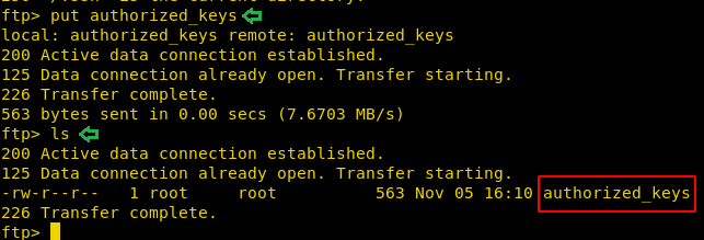 We moved the authorized_keys to the home directory so that it is easier to transfer the file using the File Transfer Protocol. Now using the put command we transferred the file to the target machine.