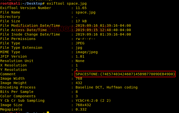 But if you remember, space stone was inside the tesseract, so we used the exif tool to see if there was metadata stored in the image. And for this use the following command :