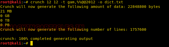 crunch 12 12 -t gam,%%@@2012 -o dict.txt