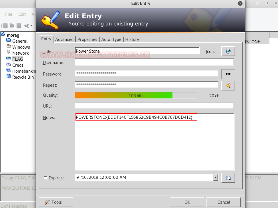 And as you can see in the image above, the master password is princesa. When entered this password, we found one enter on the flag tab which is powerstone. And so we found our fifth and second last stone/flag as shown in the image below :