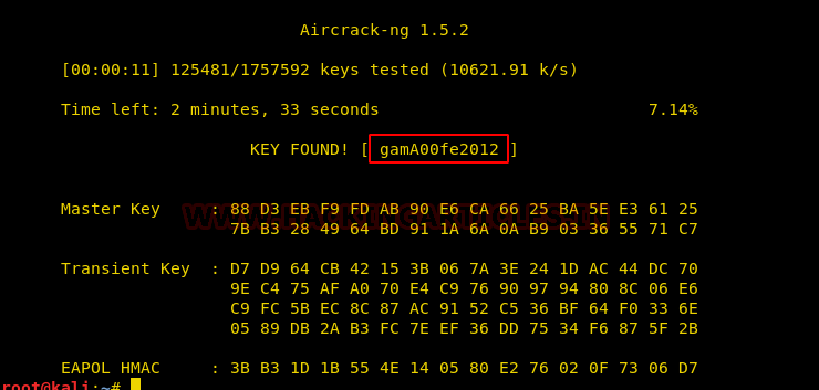Now, the other file which we found was reality.cap so while examining that file, we found wifi packets in it. So, we used aircrack-ng and used our crunch created password list to find the wifi key. And voila! We found our wifi key as shown in the image below :