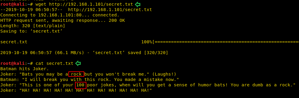 wget http://192.168.1.101/secret.txt cat secret.txt