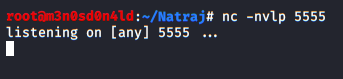 Great! now, we’ll put a listening netcat on port 1234 and run the command to get the reverse Shell.